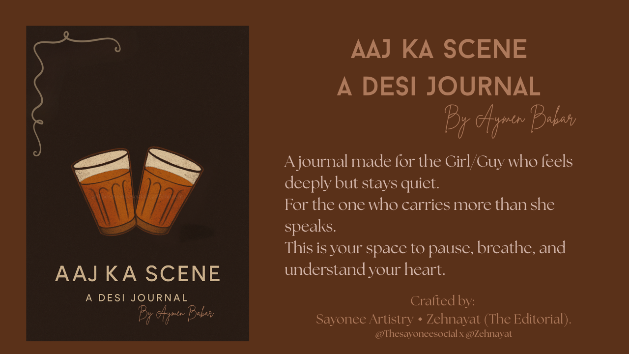 A guided desi journal created for the girl/guy who feels deeply but stays quiet. For the one who carries more than they speak. A soft space to pause, breathe & understand your scene — one chai-coded moment at a time.